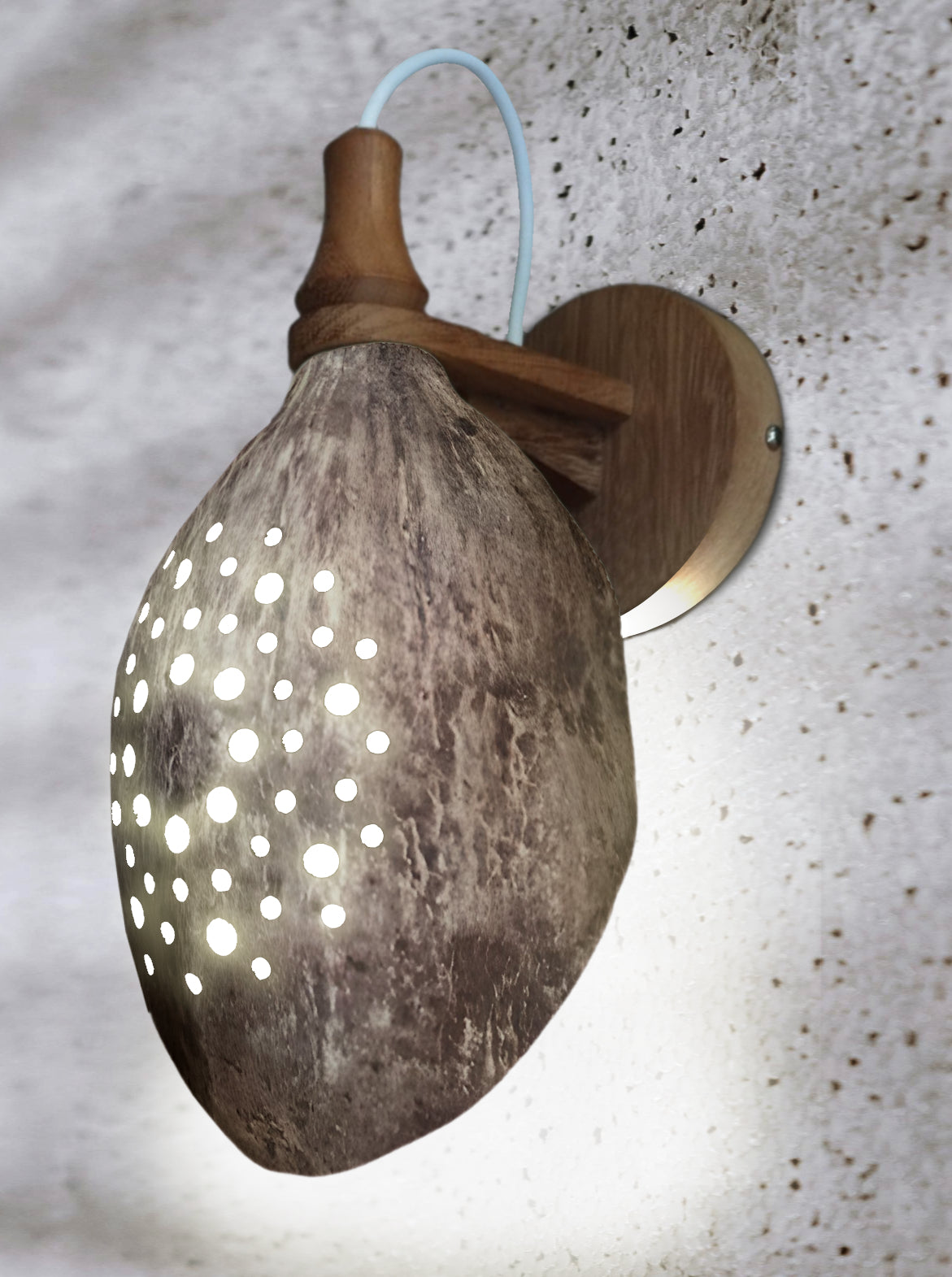 Baobab Wall Light Classic - Eco-Friendly Fruit Shell with Soft Ambient Light, Timeless Design, Ideal for Cozy Ambiance - Recycled Wood Bracket - LED/Energy Saver Bulbs (5W Max)